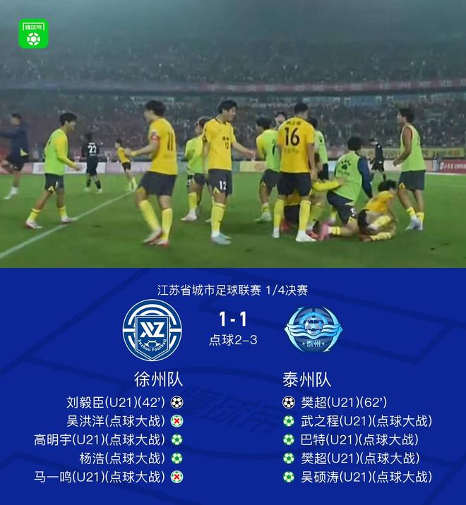 在10月5日,北京时代的江苏城市足球联赛的四分之一决赛中,徐队队在主场对阵陶欣队。郑Xuejian在上半场跑了一个十字架,刘Yichen领导了球。下半场,范·乔(Fan Chao)带领球比较了比分。 Dai Yaocheng在点球大战中两次被救出。最终,Taizhou团队以Xuzhou罚款和半决赛的总罚分为5-3,并且该队对阵Nanjing队。在主赛事的第42分钟,郑徐安(Zheng Xuejian)十字架,刘Yichen得分,Xuzhou带领球比较得分,Taizhou队1-1,Xuzhou队1-1,Wu Hongyang的惩罚被Dai Yaocheng在第二次Rotation-Sothing sothing sothing sothing sothing sothing doil dion doie dion doi yaiken dion doi yaikenge,dai yaikengengengengenge yoage,双方的球员都没有机会。在57分钟内,Wang Kaixuan从罚球地方通过了Dai Yaocheng,打了一个空的进球,球错过了技术统计团队阵容